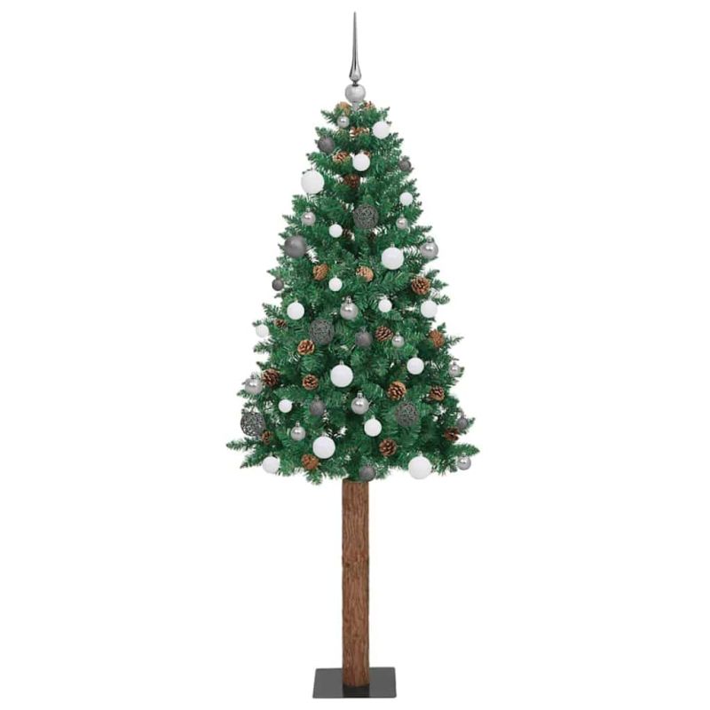 Тясно коледно дърво Зелен 210 cm ПВЦ и масивно борово дърво
