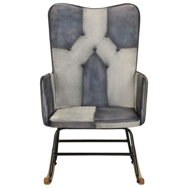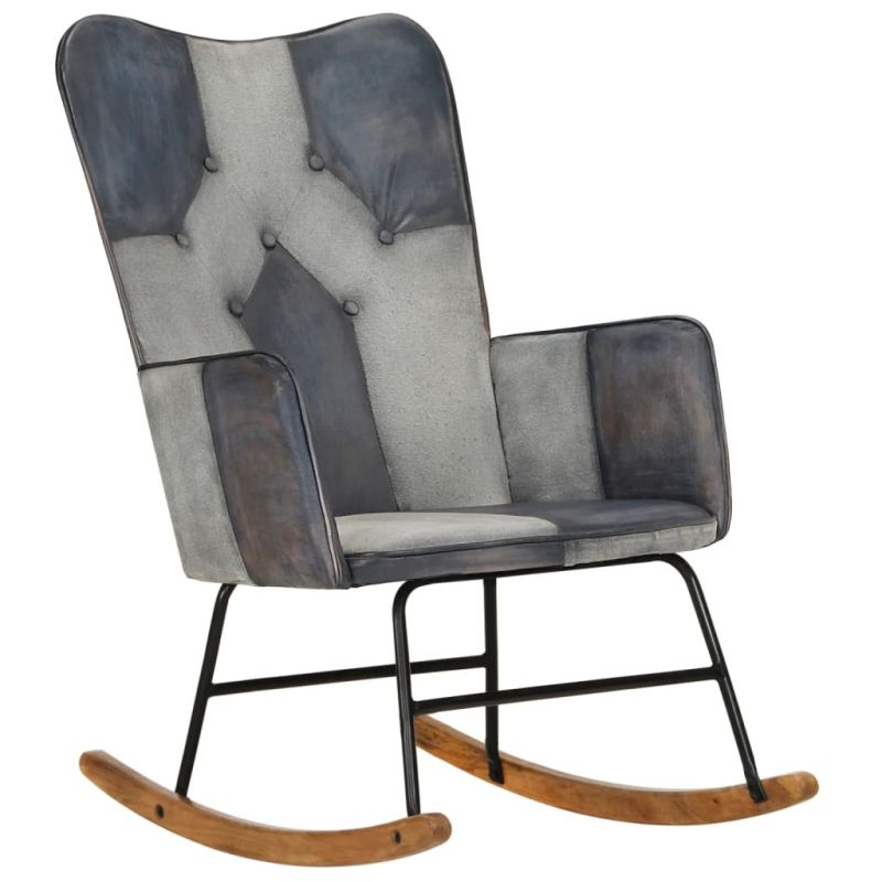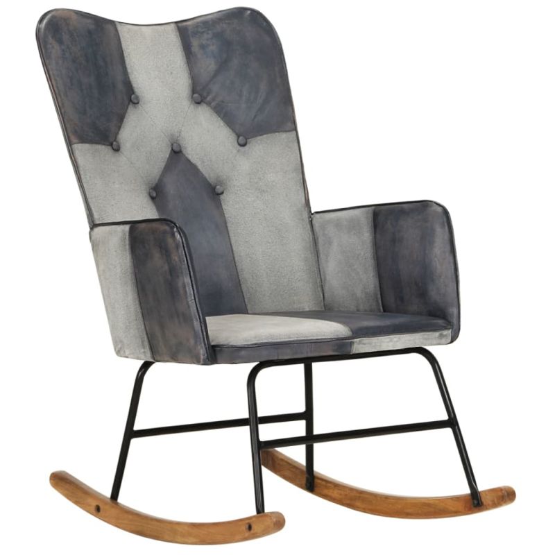Отпуснете се и се отърсете от напрегнатия ден във вашата всекидневна, спалня или хол на този тапициран люлеещ се стол! Луксозен материал: Естествената кожа е натурален непреходен материал. Може да издържи цял живот с подходящи грижа и поддръжка. Гладката повърхност също придава луксозен вид, като същевременно гарантира оптимален комфорт.Функция люлеене: Отпуснете се, като седнете удобно, докато се наслаждавате на успокояващо и нежно люлеене. Този дървен бюфет е идеално допълнение към вашата спалня и хол, създавайки трайно впечатление!Оптимално удобство при сядане: Дебело подплатената седалка и меката облегалка добавят допълнителен комфорт при седене.Стабилни крака: Железните крака придават допълнителна стабилност на този стол.Допълнителен комфорт: Подлакътниците позволяват да поставите удобно ръцете си. Забележка:Всеки продукт се доставя с ръководство за сглобяване в кашона за лесно сглобяване.Цветовете могат да варират, което прави всеки артикул уникален и малко по-различен от следващия. Доставката е на случаен принцип, което гарантира ексклузивността и индивидуалността на вашия продукт.