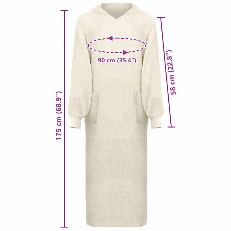 Носимият худи одеяло е луксозен артикул за твоята колекция за уют, комбиниращ практичност и комфорт. Съвременен и стилен, той съчетава топлината на одеяло с удобството на худи. Формата му е достатъчно голяма, за да пасне на различни типове тела и е идеален за студени дни вкъщи. Материали: Изработен от 100% памук, този худи одеяло е с мека и дишаща тъкан, която предлага топлина и комфорт в студените зимни месеци. Натуралните влакна от памук дават пухкаво усещане, което е страхотно за чувствителната кожа и позволява свободата на движение. Включени компоненти: Худито идва с големи предни джобове, които са направени, за да поддържат ръцете ти топли или да съхраняват малки лични вещи. Това придава на носещия топлина и удобство, идеално за отпускащи дни у дома. Характеристики / Функция / Дизайн: Худито одеяло предлага ултра меко усещане, повишаващо комфорта. Създадено с внимание към простотата и функционалността, то привлича окото с модерен вид. Голямото му оформление те обгръща с топлина и предава минималистичен стил. Препоръчителни употреби: Идеално за у дома, това худи одеяло е чудесно за гушкане на дивана, четене до камината или в леглото. Проектът му го прави подходящ за всяка обстановка, където топлина и комфорт са на първо място. Поддръжка и управление: Лесно е за поддръжка – можеш да го переш в машината, за да запази мекотата си и да изглежда свежо. Това улеснява грижата и осигурява дълготрайно удоволствие и функционалност.