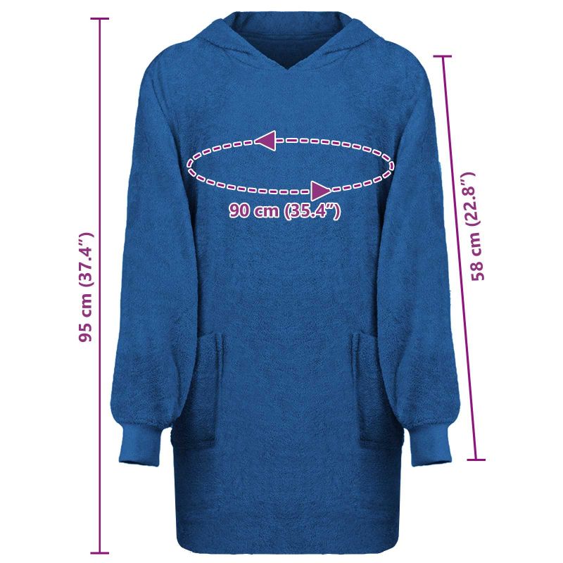 Носимият худи одеяло е луксозен артикул за твоята колекция за уют, комбиниращ практичност и комфорт. Съвременен и стилен, той съчетава топлината на одеяло с удобството на худи. Формата му е достатъчно голяма, за да пасне на различни типове тела и е идеален за студени дни вкъщи. Материали: Изработен от 100% памук, този худи одеяло е с мека и дишаща тъкан, която предлага топлина и комфорт в студените зимни месеци. Натуралните влакна от памук дават пухкаво усещане, което е страхотно за чувствителната кожа и позволява свободата на движение. Включени компоненти: Худито идва с големи предни джобове, които са направени, за да поддържат ръцете ти топли или да съхраняват малки лични вещи. Това придава на носещия топлина и удобство, идеално за отпускащи дни у дома. Характеристики / Функция / Дизайн: Худито одеяло предлага ултра меко усещане, повишаващо комфорта. Създадено с внимание към простотата и функционалността, то привлича окото с модерен вид. Голямото му оформление те обгръща с топлина и предава минималистичен стил. Препоръчителни употреби: Идеално за у дома, това худи одеяло е чудесно за гушкане на дивана, четене до камината или в леглото. Проектът му го прави подходящ за всяка обстановка, където топлина и комфорт са на първо място. Поддръжка и управление: Лесно е за поддръжка – можеш да го переш в машината, за да запази мекотата си и да изглежда свежо. Това улеснява грижата и осигурява дълготрайно удоволствие и функционалност.