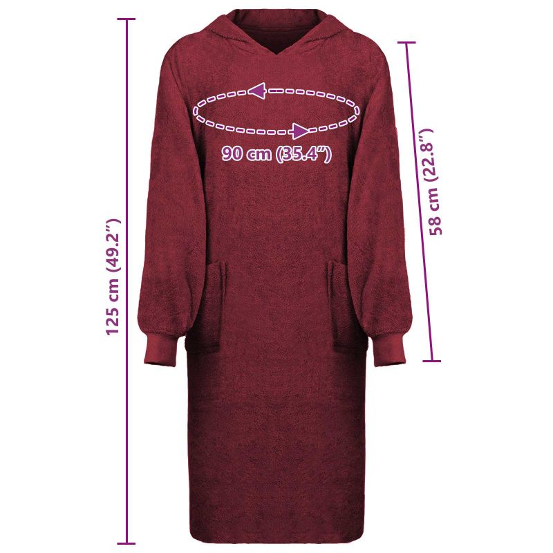Носимият худи одеяло е луксозен артикул за твоята колекция за уют, комбиниращ практичност и комфорт. Съвременен и стилен, той съчетава топлината на одеяло с удобството на худи. Формата му е достатъчно голяма, за да пасне на различни типове тела и е идеален за студени дни вкъщи. Материали: Изработен от 100% памук, този худи одеяло е с мека и дишаща тъкан, която предлага топлина и комфорт в студените зимни месеци. Натуралните влакна от памук дават пухкаво усещане, което е страхотно за чувствителната кожа и позволява свободата на движение. Включени компоненти: Худито идва с големи предни джобове, които са направени, за да поддържат ръцете ти топли или да съхраняват малки лични вещи. Това придава на носещия топлина и удобство, идеално за отпускащи дни у дома. Характеристики / Функция / Дизайн: Худито одеяло предлага ултра меко усещане, повишаващо комфорта. Създадено с внимание към простотата и функционалността, то привлича окото с модерен вид. Голямото му оформление те обгръща с топлина и предава минималистичен стил. Препоръчителни употреби: Идеално за у дома, това худи одеяло е чудесно за гушкане на дивана, четене до камината или в леглото. Проектът му го прави подходящ за всяка обстановка, където топлина и комфорт са на първо място. Поддръжка и управление: Лесно е за поддръжка – можеш да го переш в машината, за да запази мекотата си и да изглежда свежо. Това улеснява грижата и осигурява дълготрайно удоволствие и функционалност.