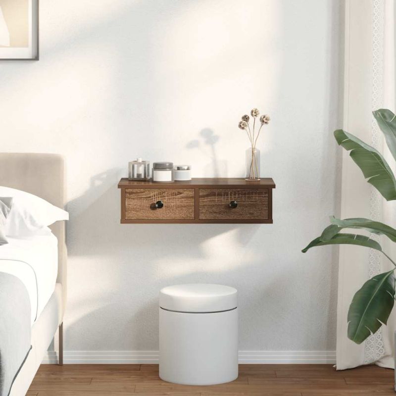 Стенен рафт с чекмеджета кафяв дъб 60x28x15 см инженерно дърво