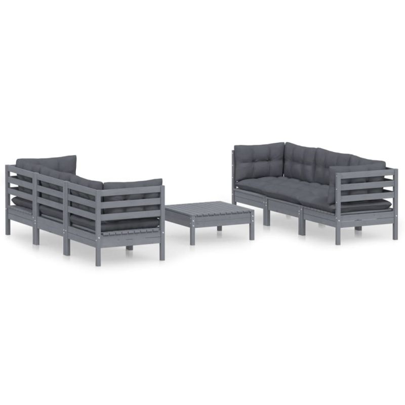 Градински лаундж комплект с възглавници антрацит, 7 части, бор