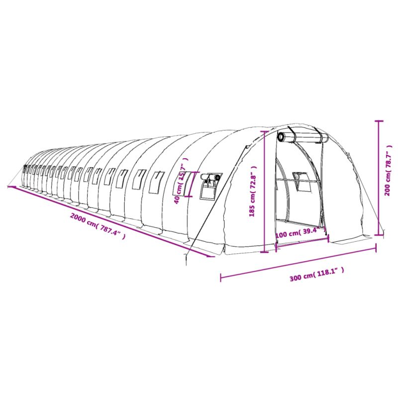 Начало Дом и градина Двор и градина Градина Парници Оранжерия със стоманена рамка зелена 60 м² 20x3x2 м