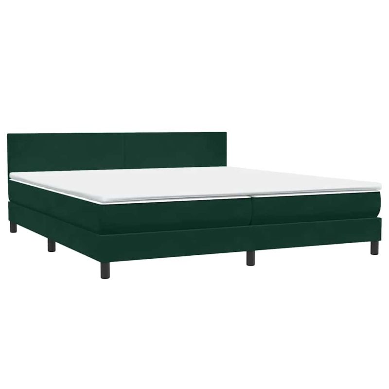 Боксспринг легло с матрак и LED, тъмнозелено, 180x220 см, кадифе