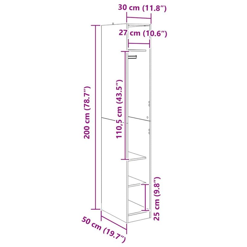 Гардероб с рафт Черния дъб 50 x 30 x 200 см Инженерно дърво