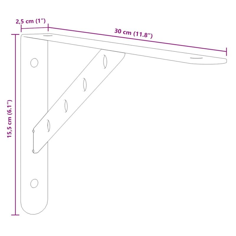 Подобрете организацията и естетиката на вашия дом с тези скоби за рафтове! Здрав материал: Тази скоба за рафтове е изработена от неръждаема стомана, което я прави издръжлива, устойчива на корозия и дълготрайна.Лесно използване: Благодарение на предварително пробитите отвори в държача, той може лесно да се сглоби с рафта (не е включен) и да се монтира на стената.Спестяване на място: Държачът за рафтове е много подходящ за проекти "Направи си сам". Осигурява повече място за съхранение, добавя декоративен стил и спестява място за мебели.Широки приложения: Тази скоба за рафт може да се използва за опора на рафтове и скоби за висящи рафтове. Може да се използва за библиотеки, кухненски рафтове, дворни стени, градински рафтове и др.