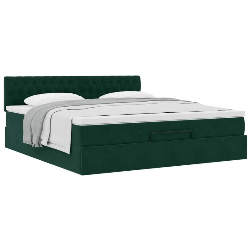 Начало Мебели Легла и аксесоари Легла и рамки за легла Османска легло с матрак, тъмнозелено, 180x200 см, кадифе