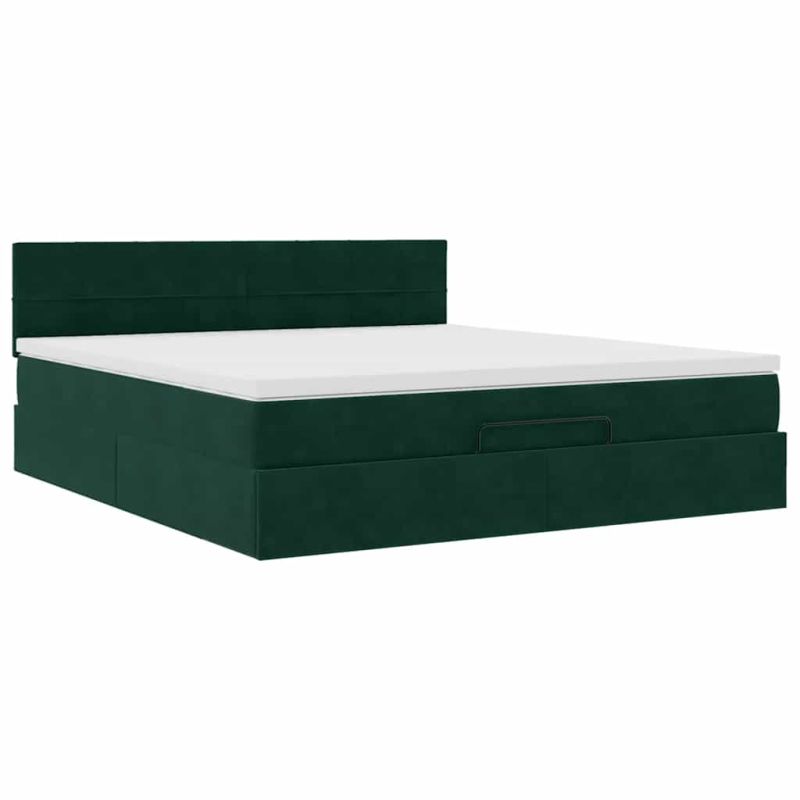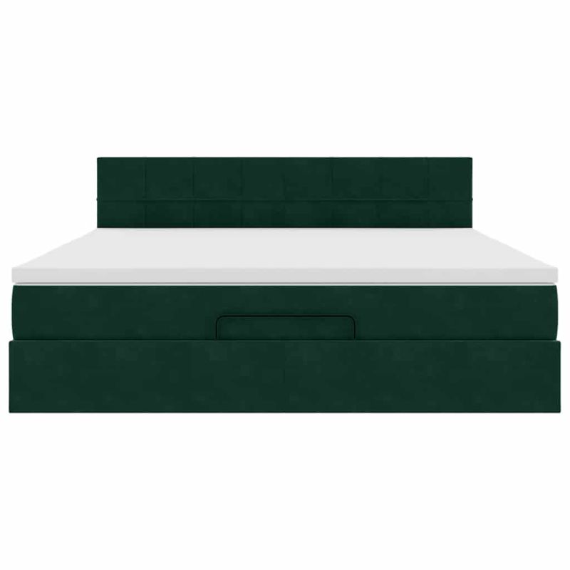 Османска легло с матрак и LED, тъмнозелено, 180x200 см, кадифе