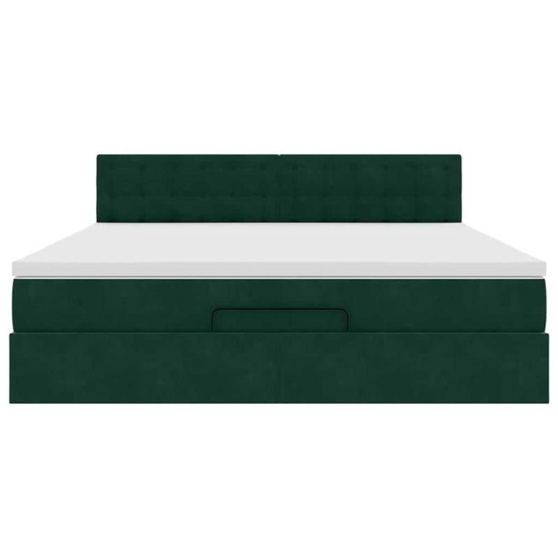 Начало Мебели Легла и аксесоари Легла и рамки за легла Османска легло с матрак и LED, тъмнозелено, 180x200 см, кадифе