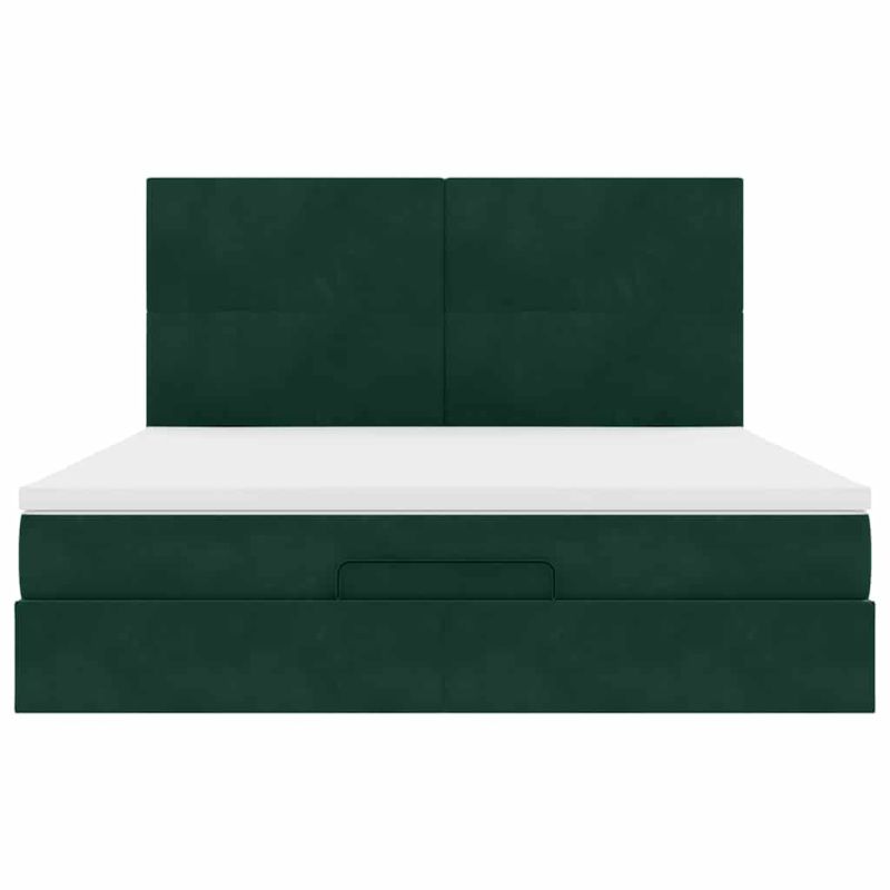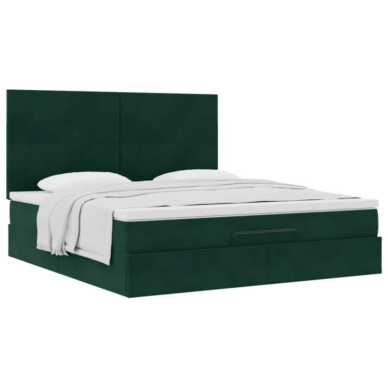 Начало Мебели Легла и аксесоари Легла и рамки за легла Османска легло с матраци, тъмнозелено, 180x200 см, кадифе