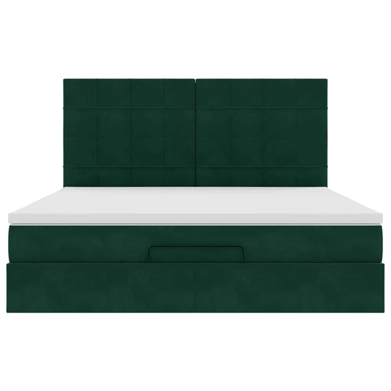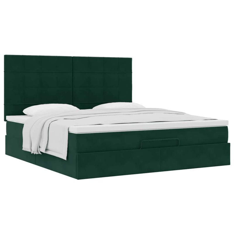 Начало Мебели Легла и аксесоари Легла и рамки за легла Османска легло с матраци, тъмнозелено, 180x200 см, кадифе