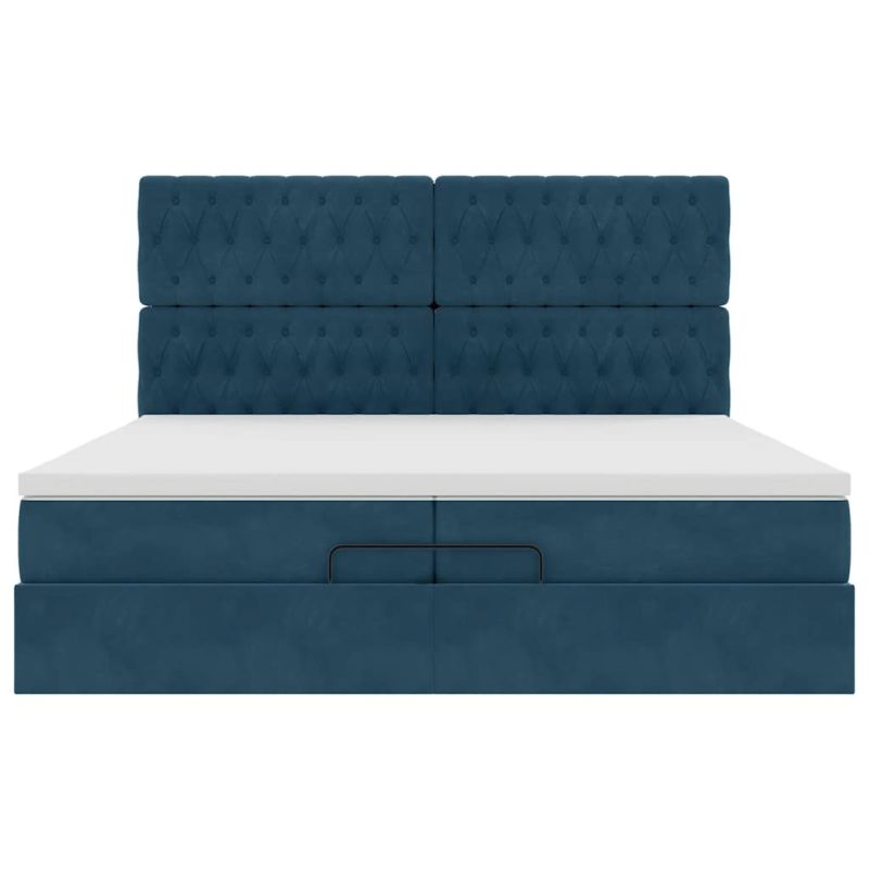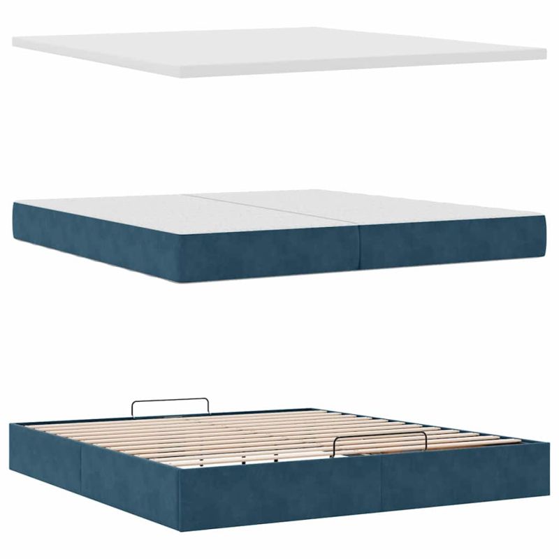 Използвайте това легло с матраци, за да се насладите на спокоен нощен сън! То ви предлага както решение за съхранение, така и комфортен сън. Мек и удобен материал: Кадифената материя се отличава с мека и гладка повърхност, която създава приятно усещане върху кожата, като ви носи топлина и максимален комфорт.Матрак с джоб пружини: Този матрак с джоб пружини има индивидуални пружини с джобчета, които работят независимо, за да осигурят персонализирана опора, като реагират само на натиска във всяка област. Този дизайн предотвратява "свличането" към средата на матрака и намалява прехвърлянето на движение в сравнение с традиционните матраци с отворени намотки. Всяка покет пружина поддържа тялото индивидуално.Достатъчно място за съхранение под леглото: Благодарение на хидравличния повдигащ механизъм рамката на леглото предлага обширно пространство за съхранение под леглото, което увеличава пространството, без да заема допълнителна площ. Само с едно издърпване на дръжката основата на ламелите се повдига плавно, което ви позволява да прибирате вещите си бързо и без усилие.Удобен горен матрак: Този топ матрак подобрява опората и комфорта със своята мека, дишаща повърхност, като същевременно удължава живота на вашия матрак. Подвижният му калъф позволява лесно изпиране, което прави поддръжката лесна. Добре е да се знае:От хигиенни съображения матракът не може да бъде върнат, ако опаковката е отстранена или отворена.