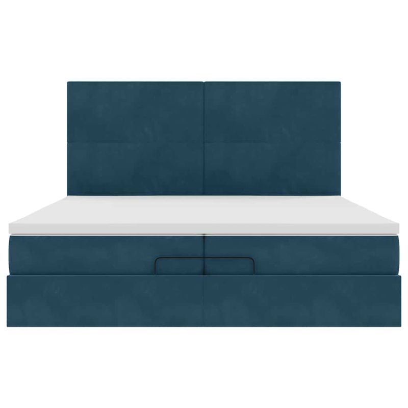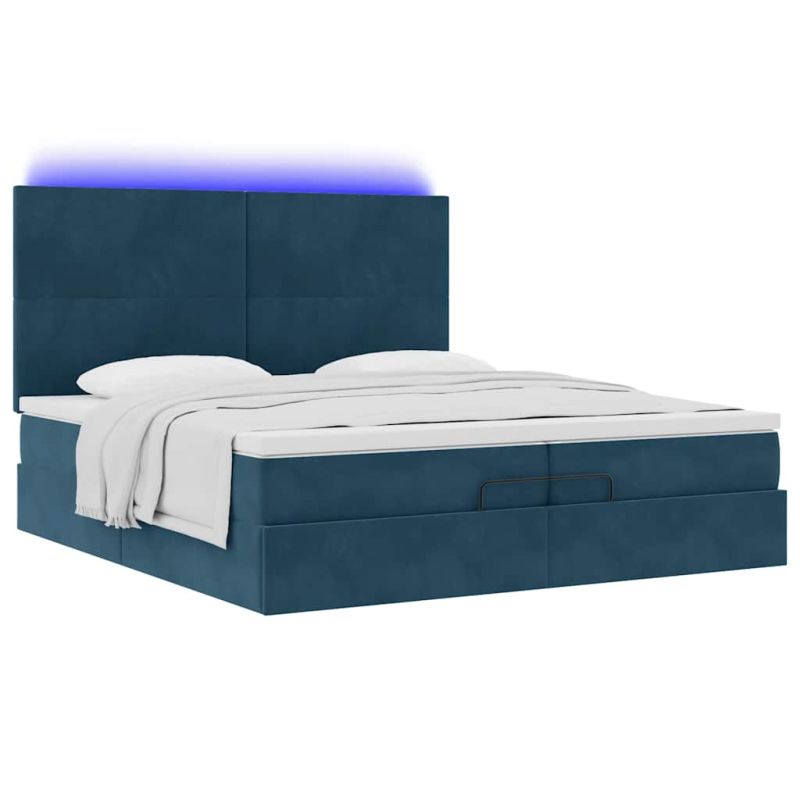 Османска легло с матраци и LED, тъмносиньо, 200x200 см, кадифе