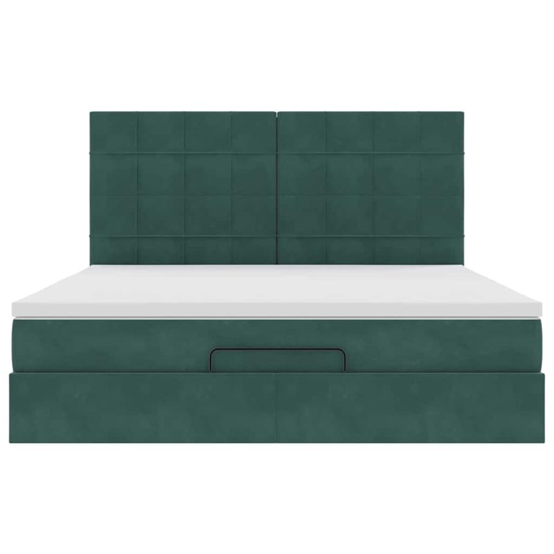 Османска легло с матраци и LED, тъмнозелено, 180x200 см, кадифе