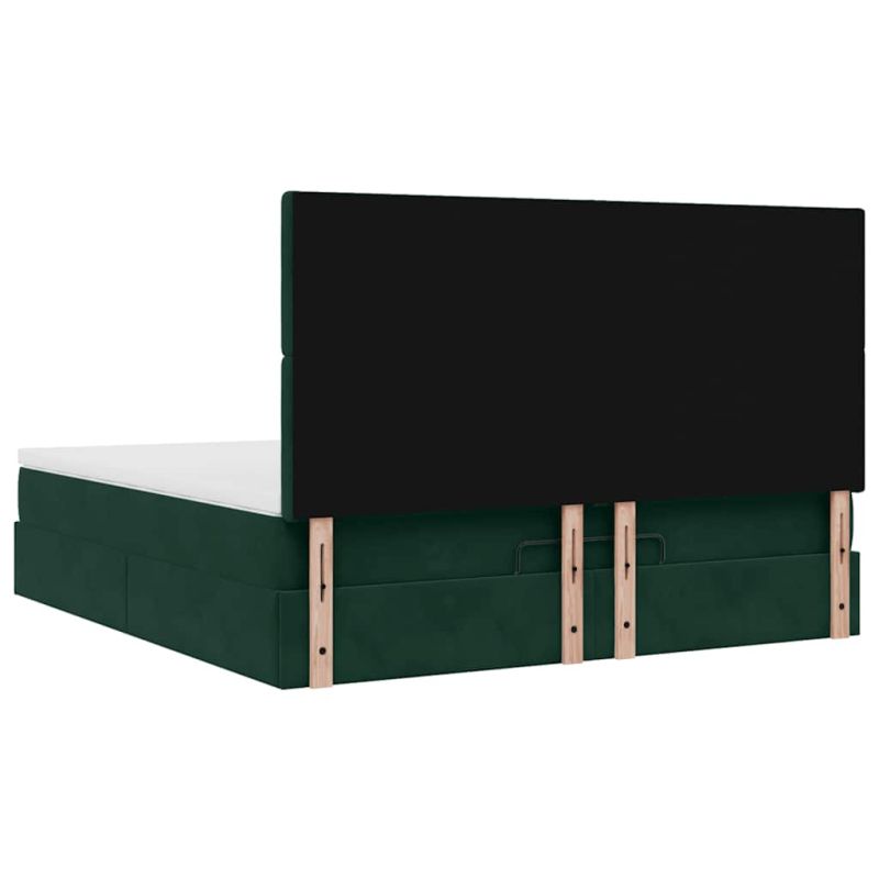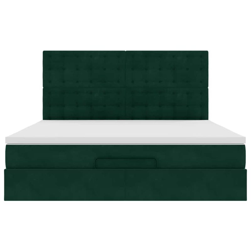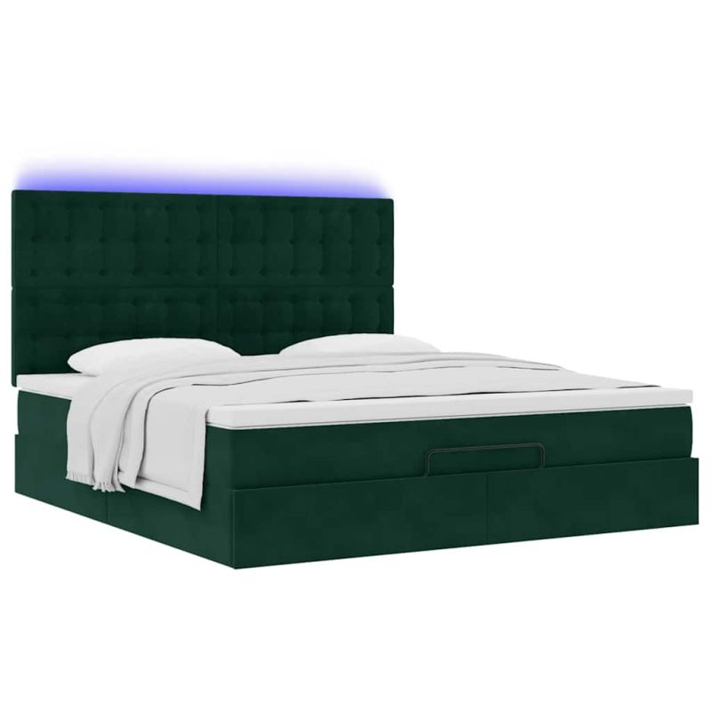 Османска легло с матраци и LED, тъмнозелено, 180x200 см, кадифе