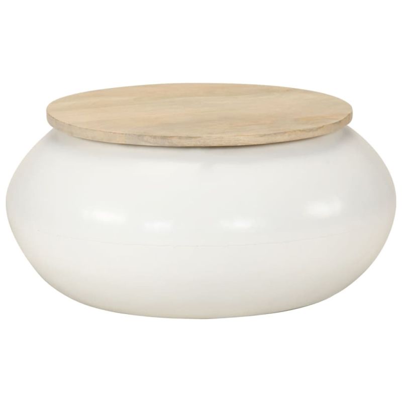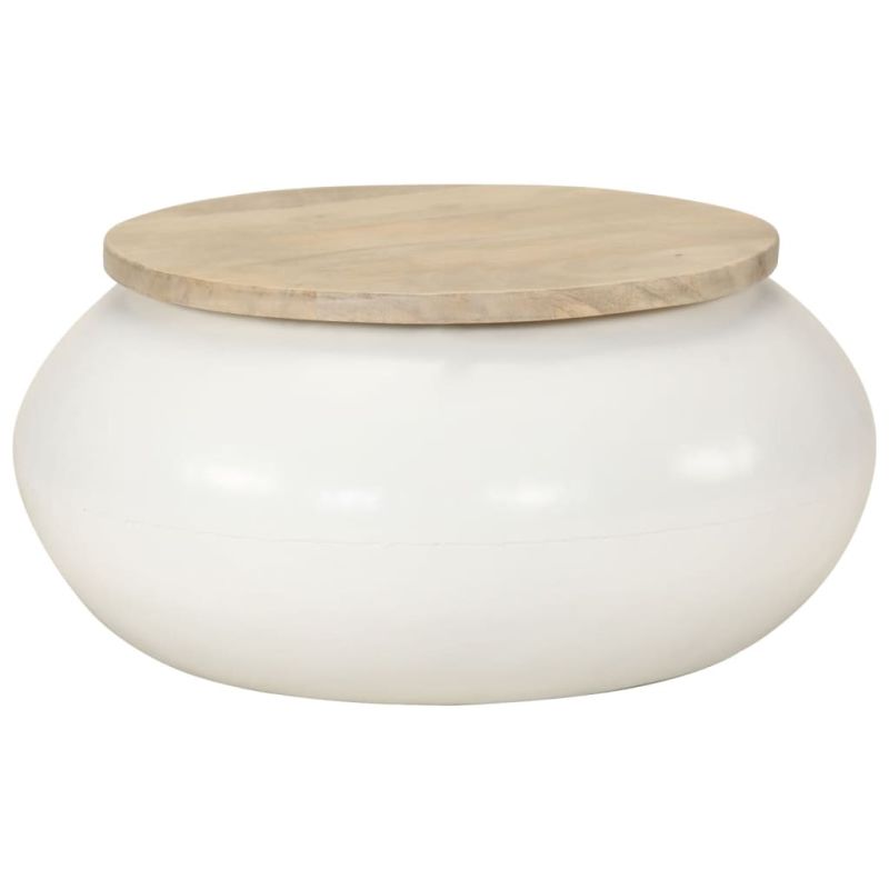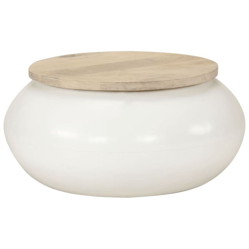 Маса за кафе, бяла, 51x51x27 см, масивно мангово дърво
