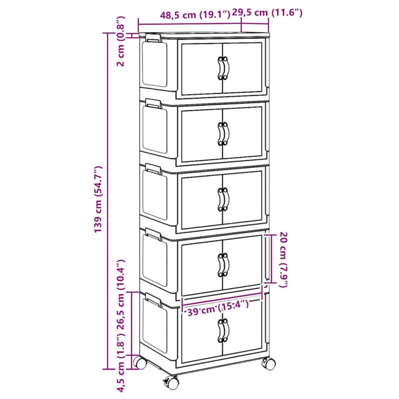 Кутия за съхранение с колела на 5 нива 28 L 48,5x29,5x139 cm