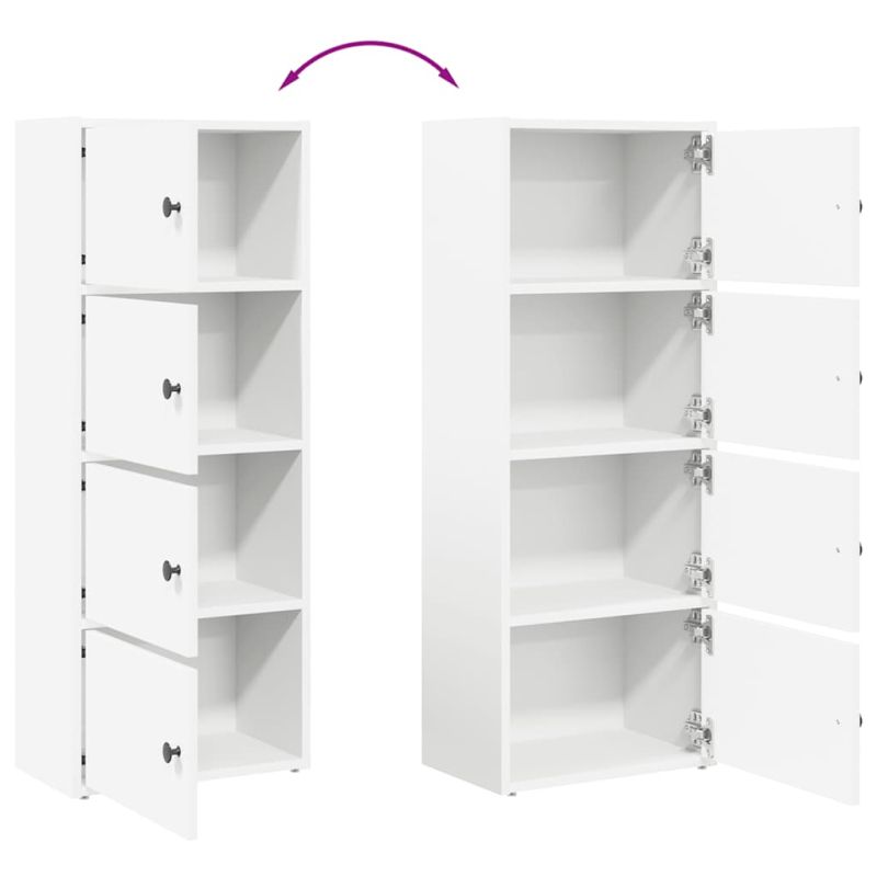 Тази етажерка за книги предлага идеалното решение за подреждане на книгите, като същевременно е стилно и функционално допълнение към интериора на дома ви. Стабилен и издръжлив материал: Инженерната дървесина е издръжлив и стабилен материал с гладка повърхност, която е устойчива на влага, изкривяване и разцепване, което я прави надежден избор за различни проекти.Голямо пространство за съхранение: Този шкаф за съхранение разполага с множество рафтове с вратички, които осигуряват достатъчно място за съхраняване на вашата колекция от книги, списания и документи в добър ред.Практична врата: Вратата на шкафа за съхранение осигурява затворено пространство за съхранение, за да бъдат вещите ви подредени, защитени и да не се виждат.Гъвкав монтаж на вратата: Вратата на шкафа може да бъде поставена отляво или отдясно, в зависимост от личните ви навици и удобство.Лесна за поддръжка: Благодарение на гладката си повърхност, шкафът се почиства лесно с влажна кърпа и изисква по-малко поддръжка. Внимание:За да предотвратите преобръщане, този продукт трябва да се използва с предоставеното устройство за закрепване на стена.