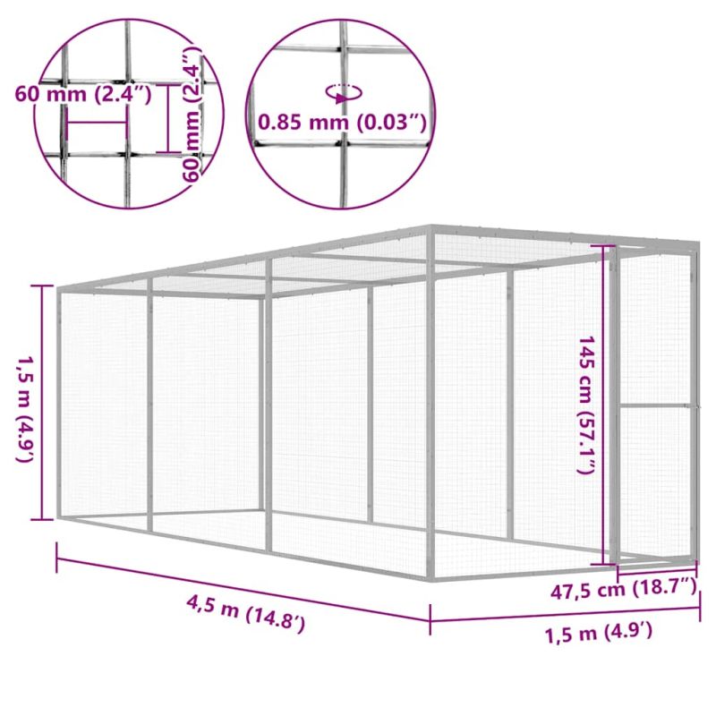 Клетка за котки 4,5x1,5x1,5 м поцинкована стомана