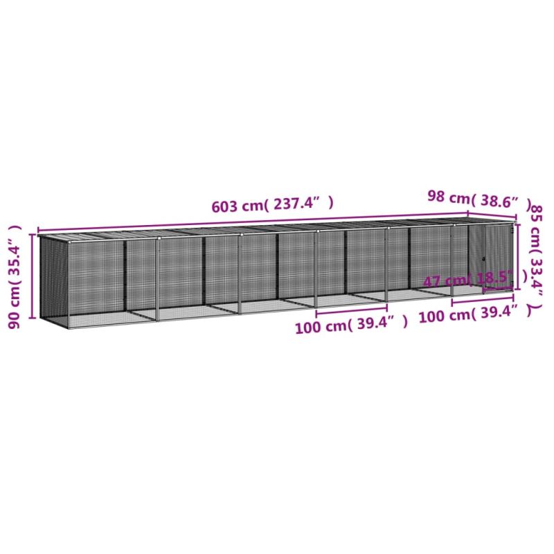 Клетка за пилета с покрив антрацит 603x98x90 см стомана
