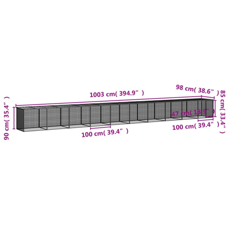 Клетка за пилета с покрив антрацит 1003x98x90 см стомана