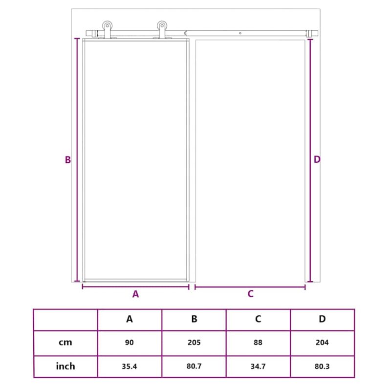 Тази плъзгаща се врата създава грациозен преход от една стая в друга. Осигурява идеалното решение за спестяване на пространство. Стабилен материал: Алуминиевата рамка и ESG панелите добавят допълнителна стабилност. Модерен дизайн: С прозрачно стъкло, тя позволява много светлина в стаята ви.Безопасна и тиха: Благодарение на мекия стоп за спиране на вратата, тя може да се отваря и затваря тихо, когато отваряте и затваряте чрез задействане на буфер. Забележка:Висящите колела и горните плъзгащи се релси не са включени в доставката.Вратата може да се монтира само в комбинация с комплекти обков за плъзгащи се врати. Можете да намерите подходящите комплекти обков за плъзгащи се врати в нашия магазин (SKU: 145262, 145263), които трябва да бъдат закупени отделно. За начина на инсталиране можете да разгледате нашето ръководство за инсталиране на комплектите обков за врати и плъзгащи се врати.