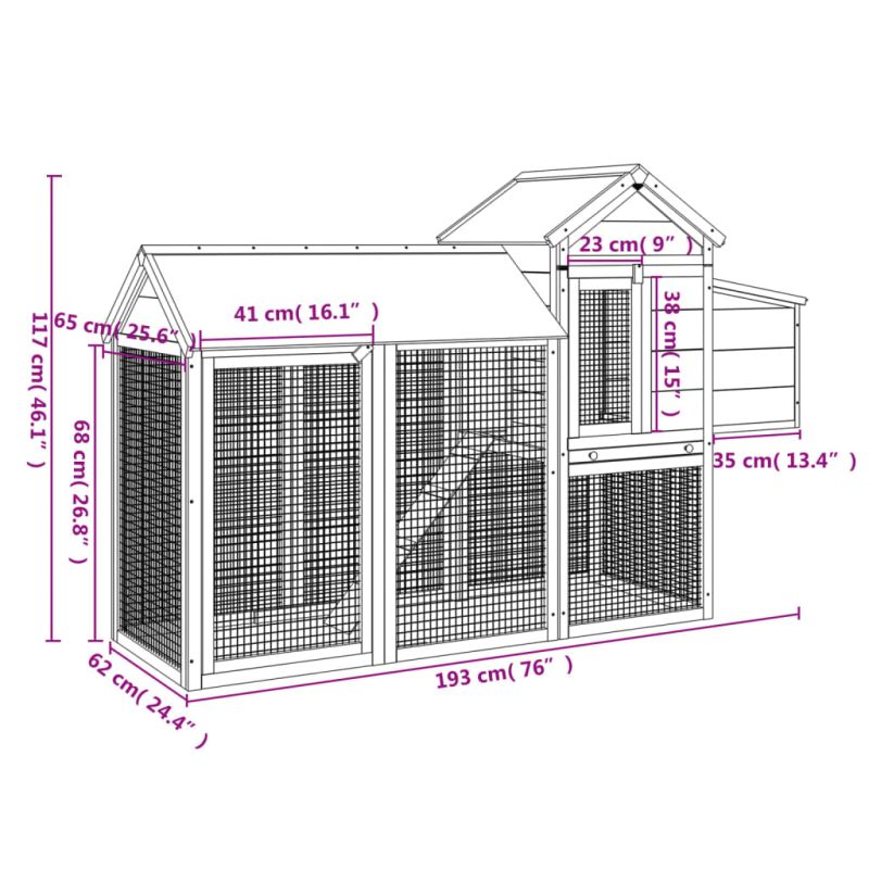 Кокошарник сив 193x65x117 см бор масив