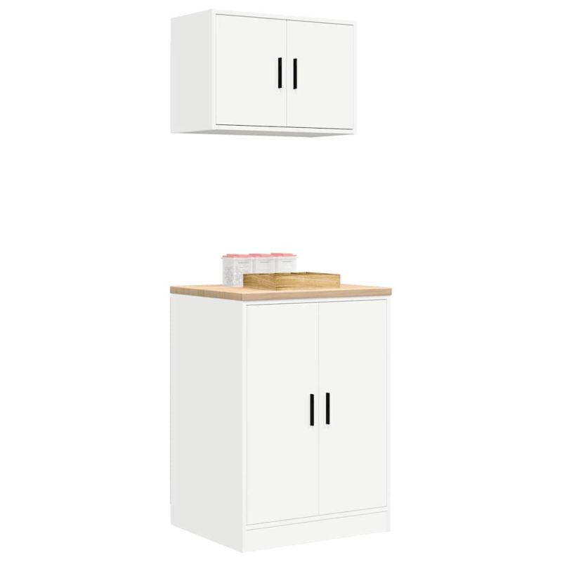 гаражни шкафове, 2 бр, бели, инженерно дърво
