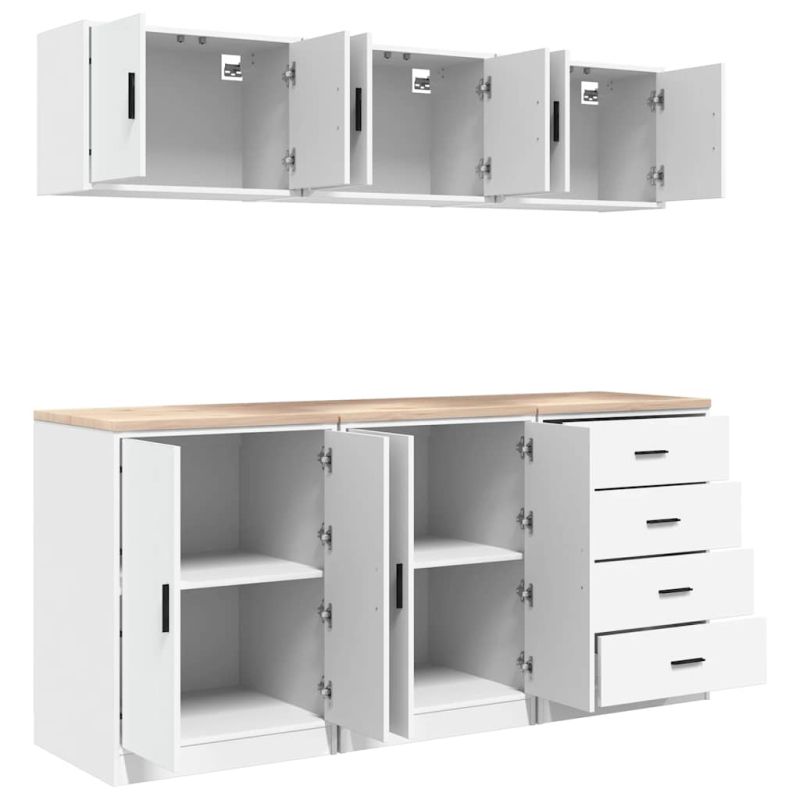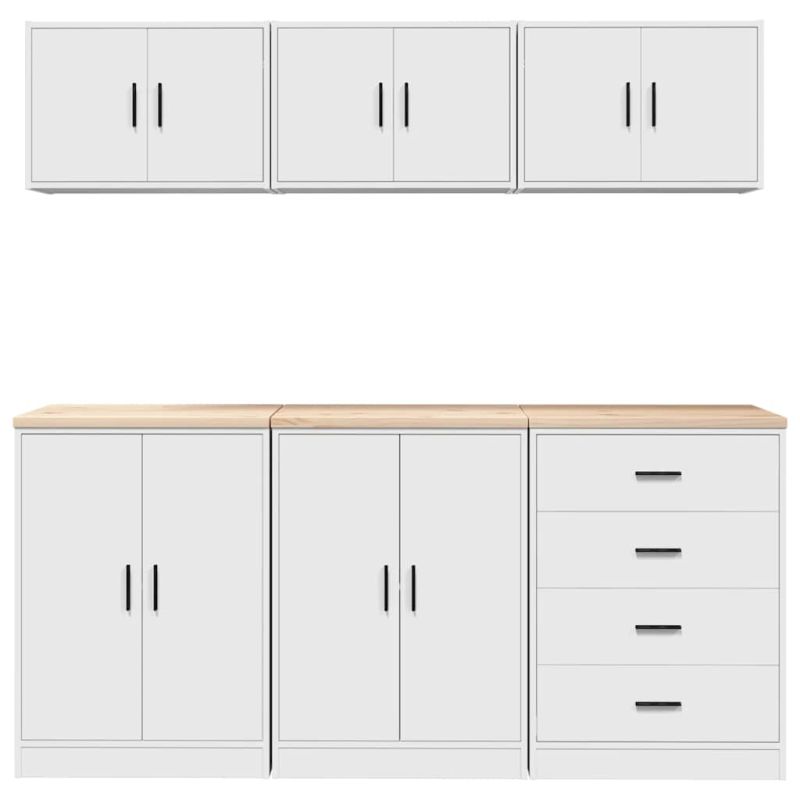 гаражни шкафове, 6 бр, бели, инженерно дърво