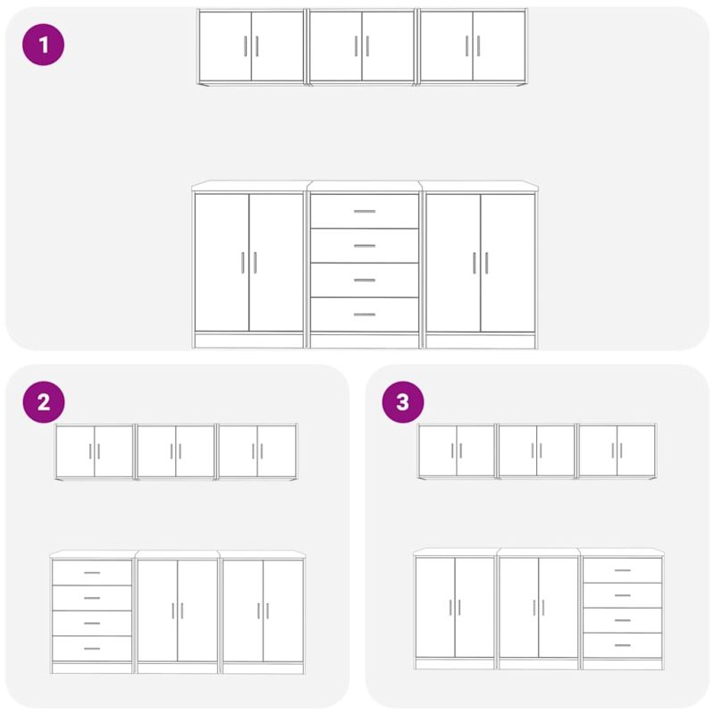 Тези гаражни шкафове са отличен избор за организиране на всички инструменти и материали в гаража, склада или работилницата. Издръжливост и дълготрайност: Този гаражен шкаф е изработен от издръжлива борова дървесина и инженерна дървесина, което гарантира стабилност и здравина за дълготрайна употреба.Голямо пространство за съхранение: Този шкаф за инструменти ви позволява да съхранявате често използваните си инструменти на леснодостъпно място, което прави достъпа до всичко необходимо за следващия ви проект удобен.Универсална работна повърхност: Дървеният работен плот осигурява стабилна повърхност за различни задачи, като например ремонти, сглобяване или проекти "Направи си сам".Лесна за поддръжка: Благодарение на гладката си повърхност, шкафът се почиства лесно с влажна кърпа и изисква по-малко поддръжка.Широки приложения: Този гаражен шкаф за съхранение осигурява много безопасно пространство, което го прави идеален за организиране на предмети в различни помещения, като гаражи, офиси, сервизни помещения, килери, мазета или работилници.Гъвкав монтаж на вратата: Вратата на отделението може да се монтира отляво или отдясно според вашите лични навици и предпочитания. Добре е да се знае:Винтовете и дюбелите за вътрешната стена не са включени. Съветваме ви да намерите и използвате винтове и дюбели, подходящи специално за вашите стени. Ако не сте сигурни, можете да се консултирате с професионалист. Моля, прочетете и следвайте всяка стъпка от инструкциите. Внимание:За да предотвратите преобръщане, този продукт трябва да се използва с предоставеното устройство за закрепване на стена.