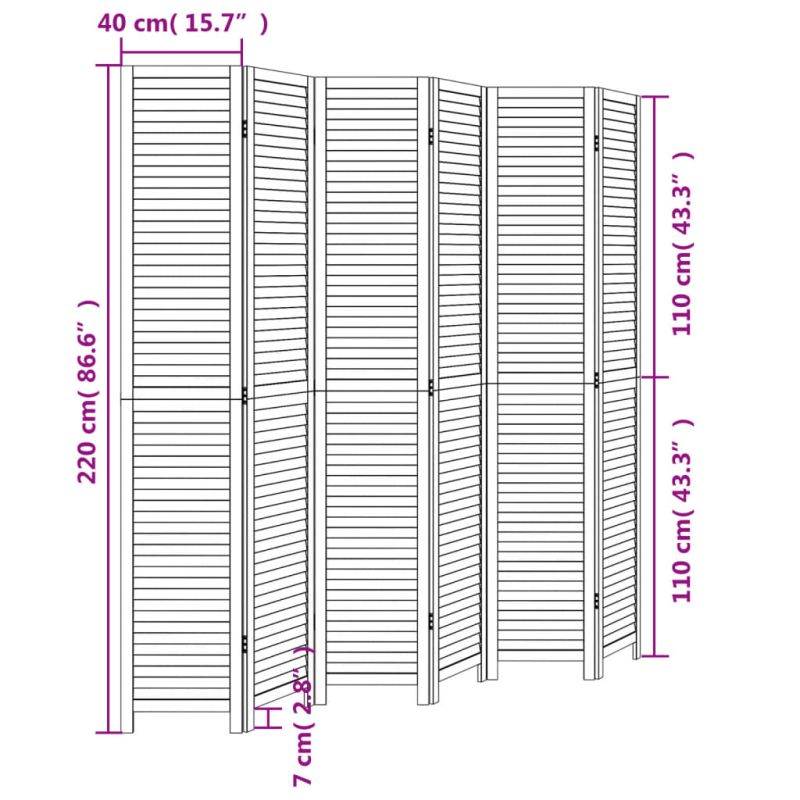Начало Дом и градина Мебели Паравани Разделител за стая, 6 панела, черен, дърво пауловния масив