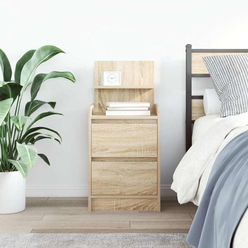 Начало Мебели Маси Нощни шкафчета Нощно шкафче с 2 чекмеджета, дъб сонома, 38x34x80 см