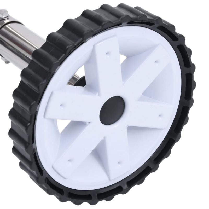 Тази ролка за покривало за басейн е идеална, за да поддържа покривалото ви за басейн на място и по този начин да поддържа басейна и СПА центъра чисти. Ролката разполага с механизъм за регулиране на плъзгача и може лесно да се премести настрани до правилната позиция, за да отговаря на покривалото (подходяща за покривало с максимална ширина 6,3 м). Оборудвана е с 2 колелца за лесно транспортиране и манивела на колелото с ръчно копче за лесно управление. Когато манивелата се завърти, покривалото се плъзга без усилие върху ролката с помощта на включените кабели. Тръбата на ролката е изработена от устойчив на корозия и атмосферни влияния алуминий, който е здрав и много издръжлив. Ролката може да се демонтира и е основна част от оборудването на басейна.