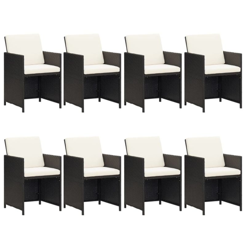 Градински трапезен комплект възглавници 9 части полиратан черен