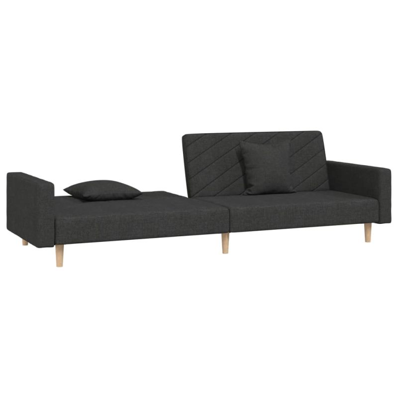 2-местно разтегателно канапе с две възглавници, черно, текстил