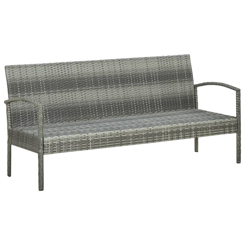 3-местен градински диван с шалте, сив, полиратан