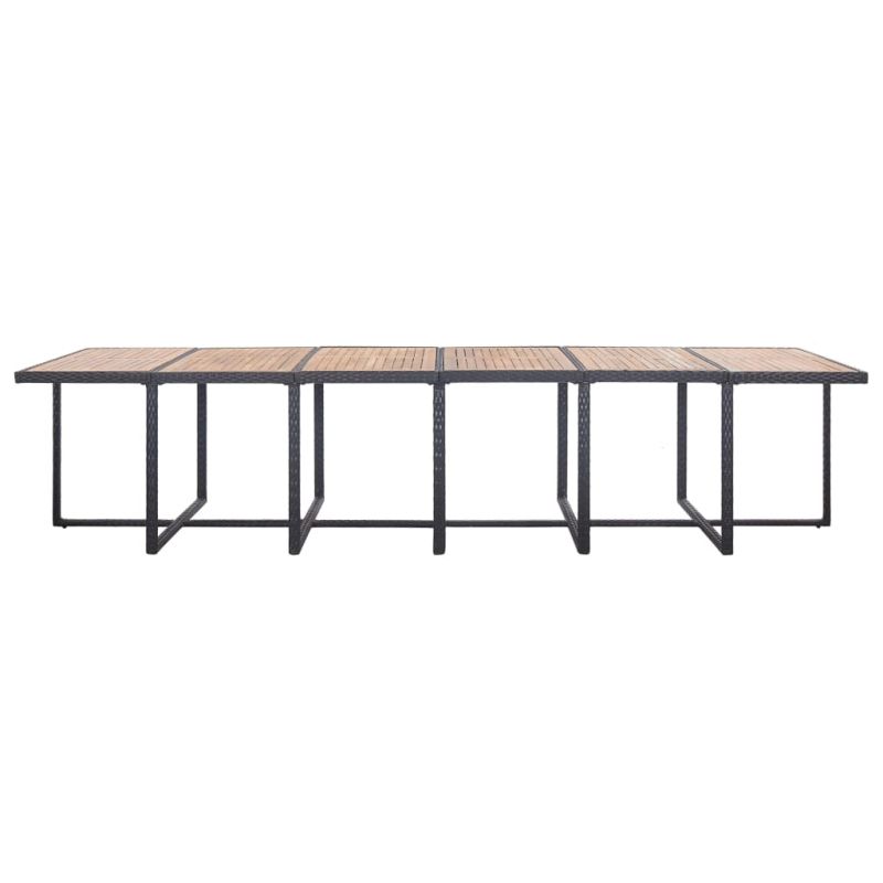 С издържлива стоманена рамка и стилен дизайн, нашият трапезен комплект от ратан е идеален избор за вашето открито пространство. Той ще осигури удобно място за семейството ви за вечеря, четене или почивка. Стоманената рамка придава здравина, докато устойчивият на влага и различни атмосферни условия полиратан прави комплекта лесен за почистване. Понеже конструкцията е лека, мебелите са лесни за местене. Дебелите подвижни възглавници на седалките и облегалките, изработени от водоотблъскващ полиестер, безспорно ще предложат максимален комфорт при седене. В допълнение, табуретките могат да се съхраняват под столовете, докато същевременно комбинираните табуретки и столове могат да се съхраняват под масата, когато не се използват, за да спестят повече място! Доставката включва 1 маса със дървен плот, 12 ратанови стола, 4 табуретки и 28 подвижни възглавници. Забележка: Препоръчваме да покривате комплекта при дъжд, сняг и скреж с цел максимално продължителна употреба.
