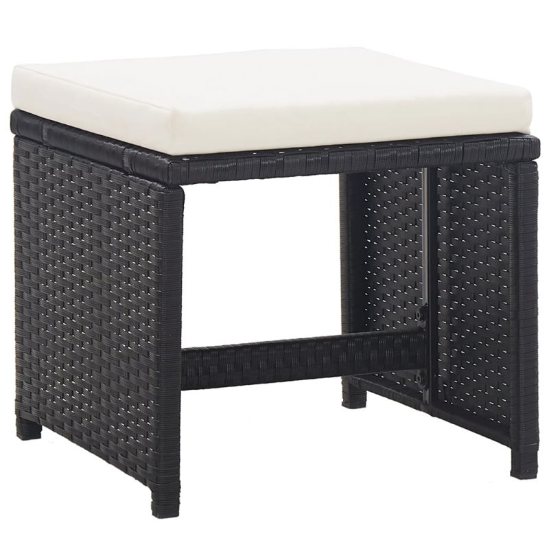 Градински комплект с възглавници, 17 части, черен полиратан