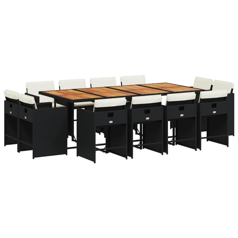 Външен трапезен комплект 13 части с възглавници черен полиратан