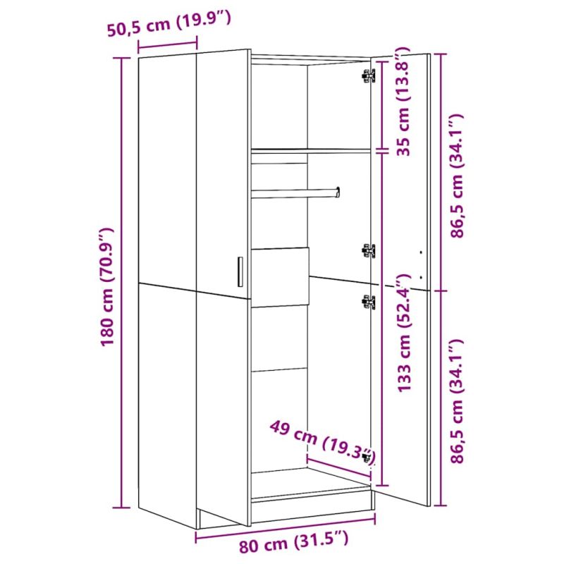 Този компактен гардероб прави дрехите или ежедневните ви аксесоари леснодостъпни. Той ще осигури перфектно решение за съхранение и ще добави шикозно усещане в сегашния ви дом. Този гардероб е изработен от първокласни дъски, което му осигурява здравина, издръжливост и дълъг експлоатационен живот. Той включва голямо отделение с релса за окачване, като ви предлага достатъчно място както за по-дългите ви тоалети, така и за други сгънати дрехи или аксесоари като пуловери, дънки, шапки, ръчни чанти и др. Продуктът се почиства лесно. Този гардероб се сглобява лесно.