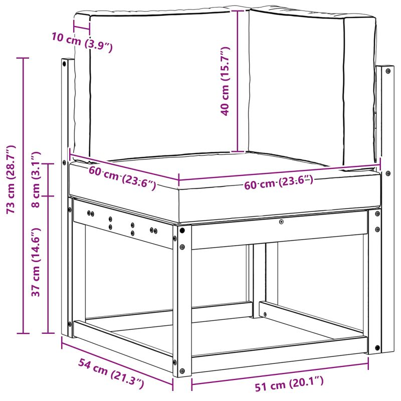• 1 x Ъглов диван: 63 x 63 x 73 см (ДxШxВ)