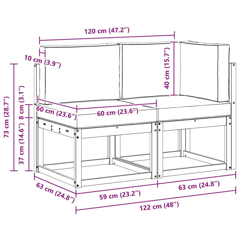• 1 x Среден диван: 59 x 63 x 73 см (ДxШxВ)