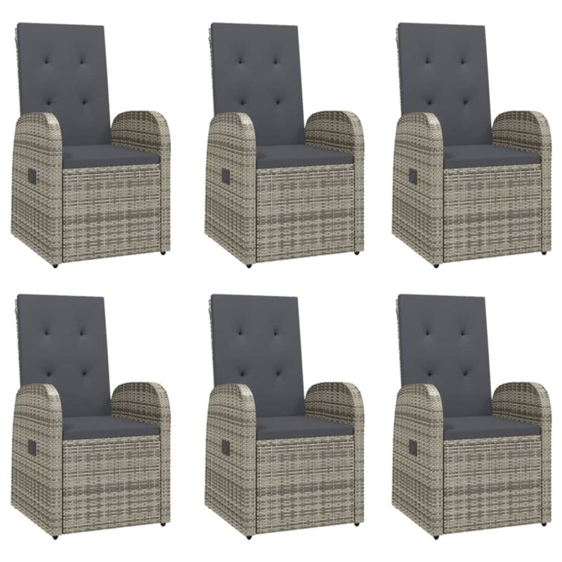 Градински трапезен комплект 7 части с възглавници сив полиратан