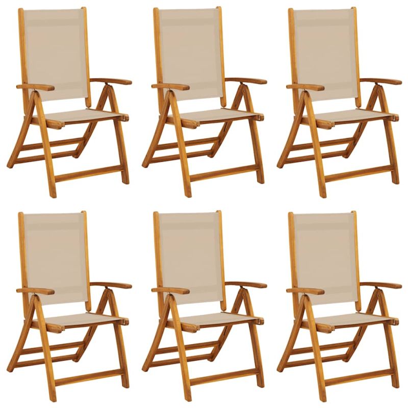 Сгъваеми градински столове, 6 бр, акация масив и textilene