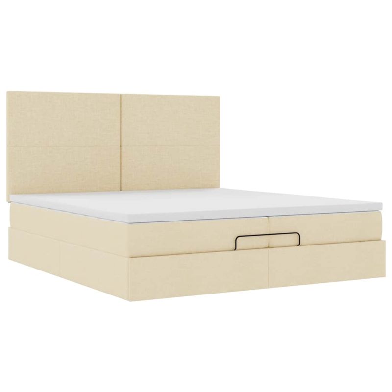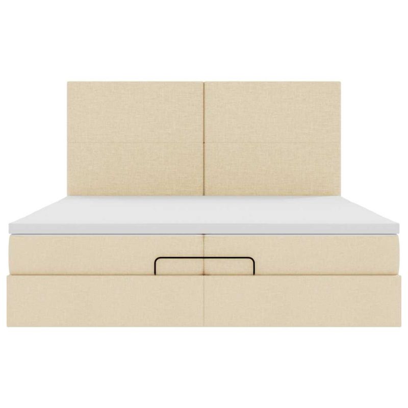 Османска легло с матрак и LED, кремаво, 200x200 см, плат