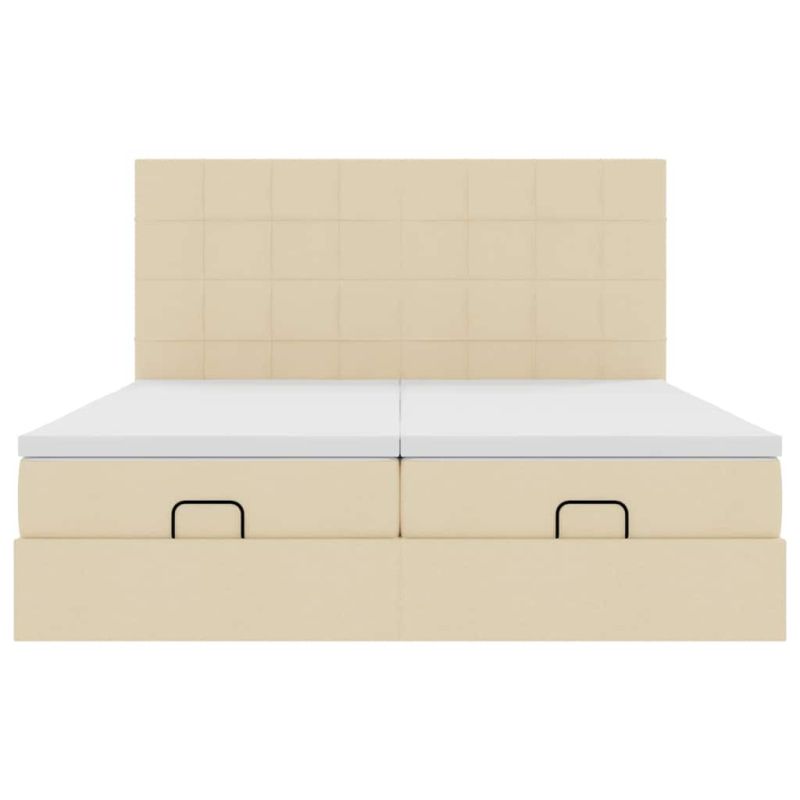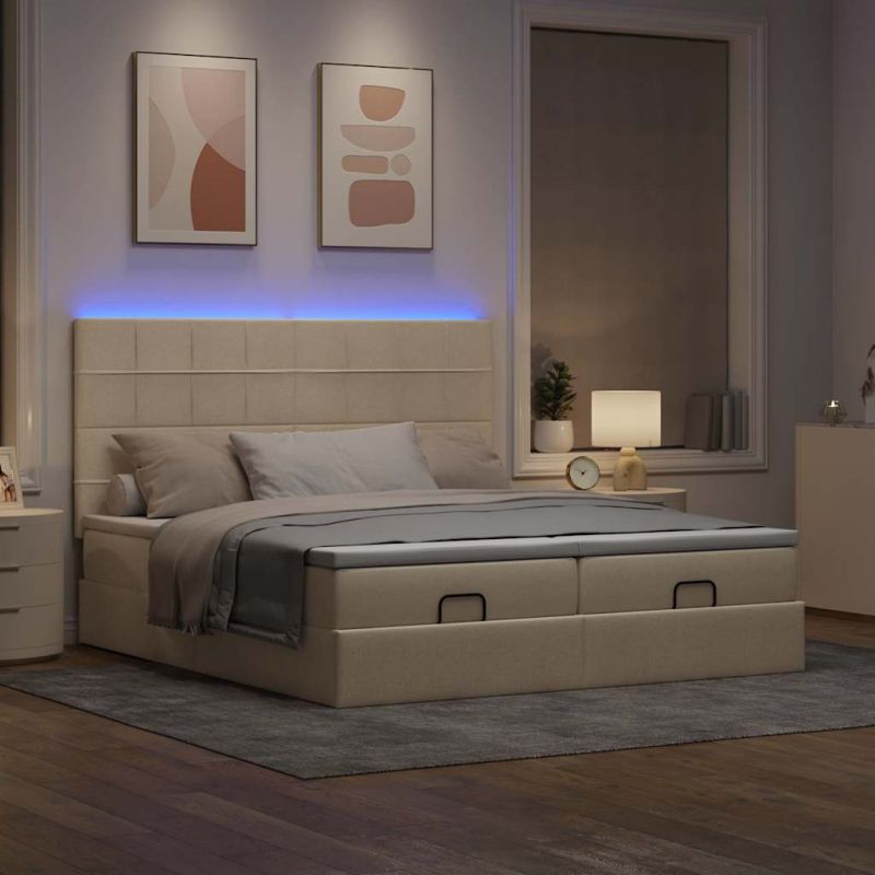 Османска легло с матрак и LED, кремаво, 200x200 см, плат