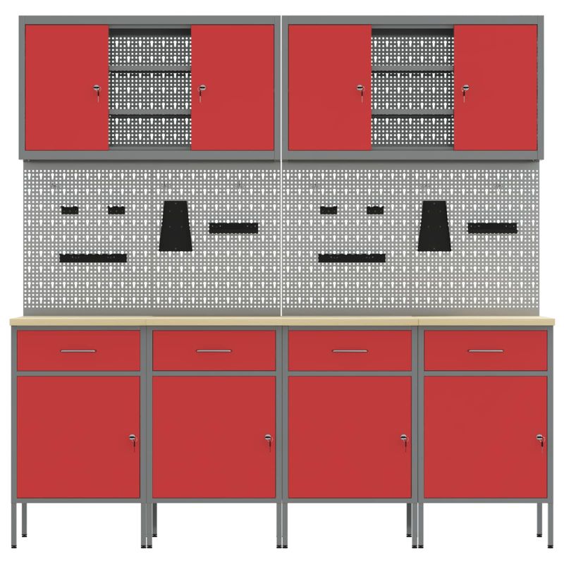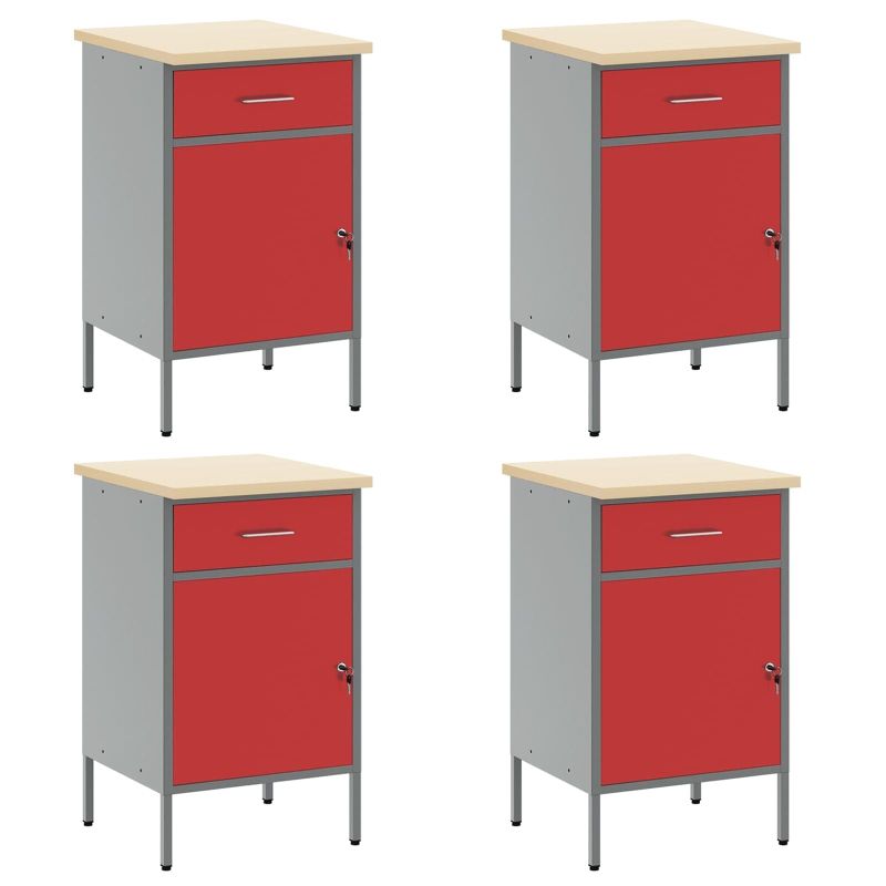 Работен кабинет 10 pcs Червено Инженерна дървесина и стомана