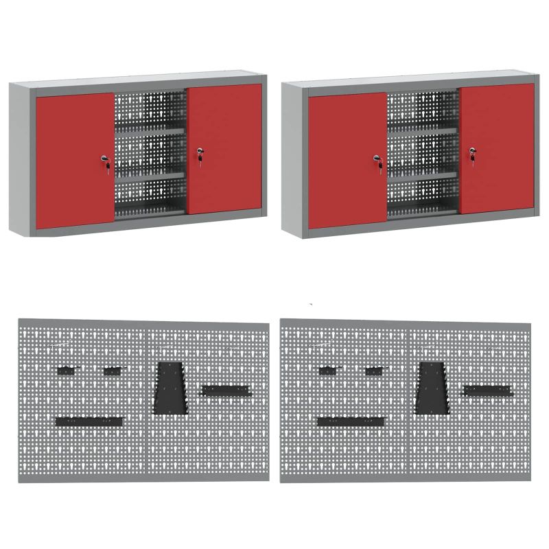 Работен кабинет 10 pcs Червено Инженерна дървесина и стомана
