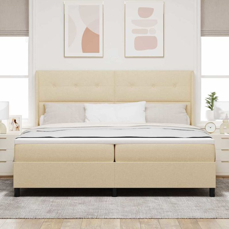 Легло с пружинирана основа с матрак Крем 200 x 200 cm текстил